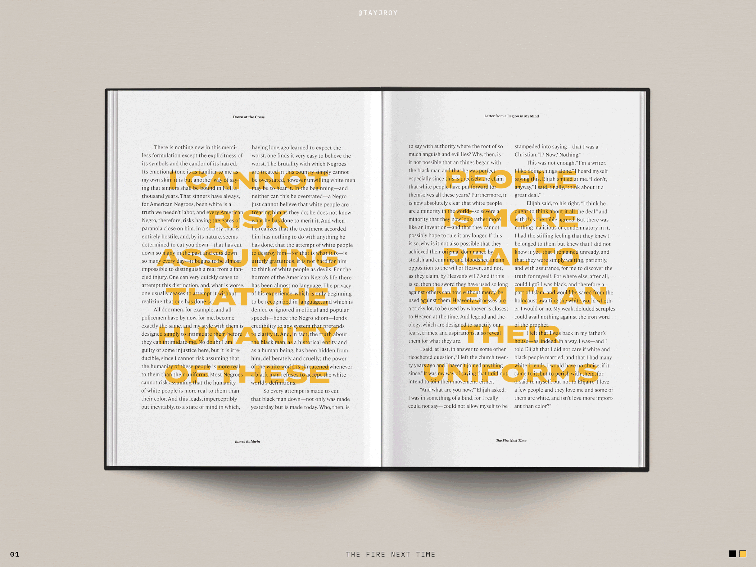 I designed and shared one spread a day for a week as I read the texts, nicknaming these pieces Education Editorials. Authors covered include James Baldwin, Angela Davis, and Ibram X. Kendi.